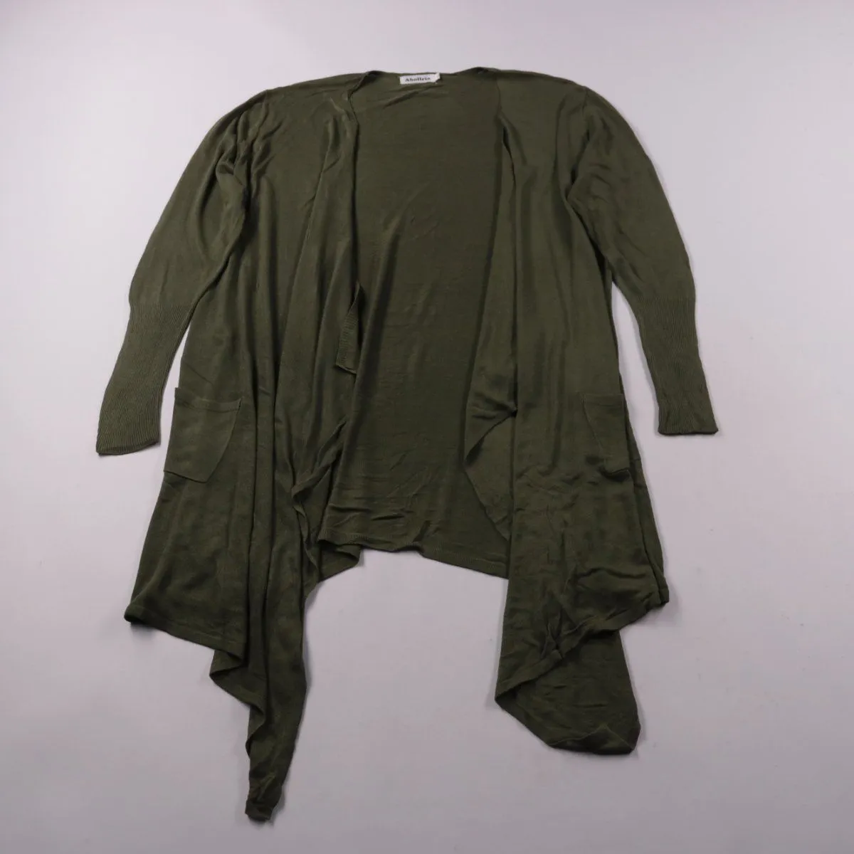 Женский кардиган Abollria цвета хаки, тонкий трикотаж с открытым передом и удлинёнными драпирующимися полочками. Подойдёт для повседневных образов и офиса в прохладную погоду, удобно носить как второй слой. Лёгкий материал почти не мнётся в носке и быстро сохнет.