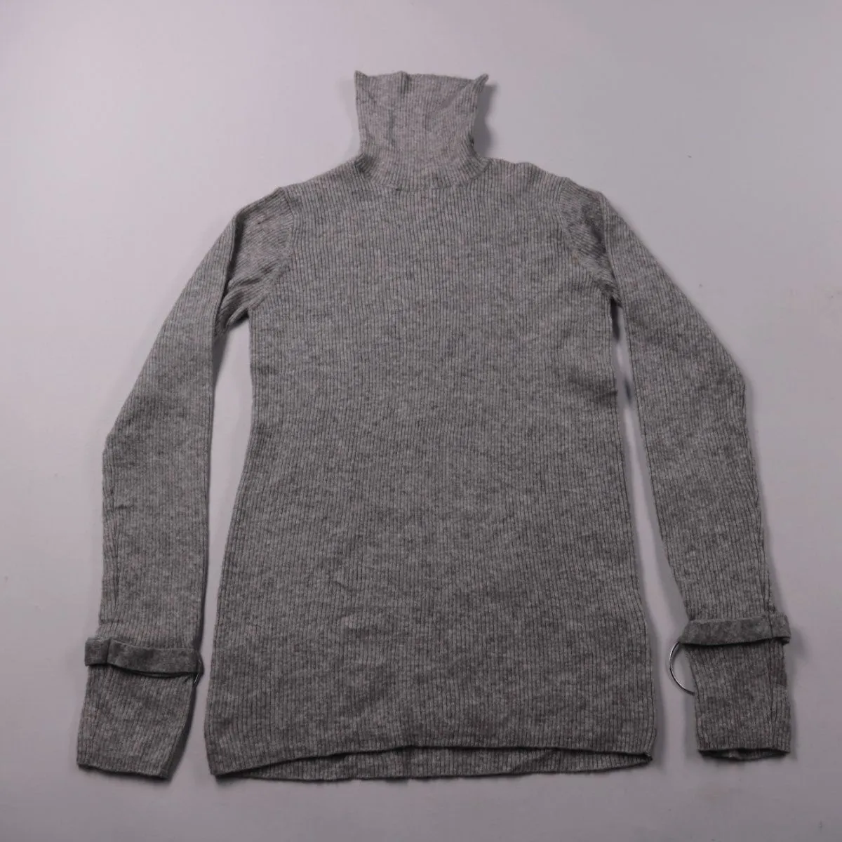 Женская водолазка Primark серого меланжевого цвета в рубчик с высоким воротом. Подойдёт для прохладной погоды и удобно носится как базовый слой под жакет или куртку. Трикотаж тянется и не сковывает движения.