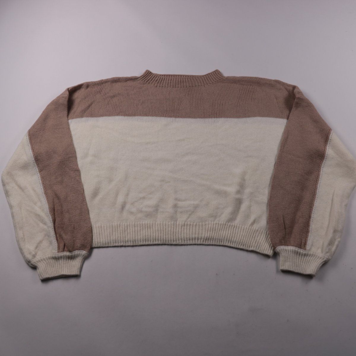 Вязаный джемпер SASS в бежево-коричневой расцветке колор-блок с круглым вырезом и манжетами. Подойдёт для повседневных образов в прохладную погоду, удобно носить слоем под куртку или пальто. Смесь акрила с шерстью делает вещь тёплой и практичной в уходе.