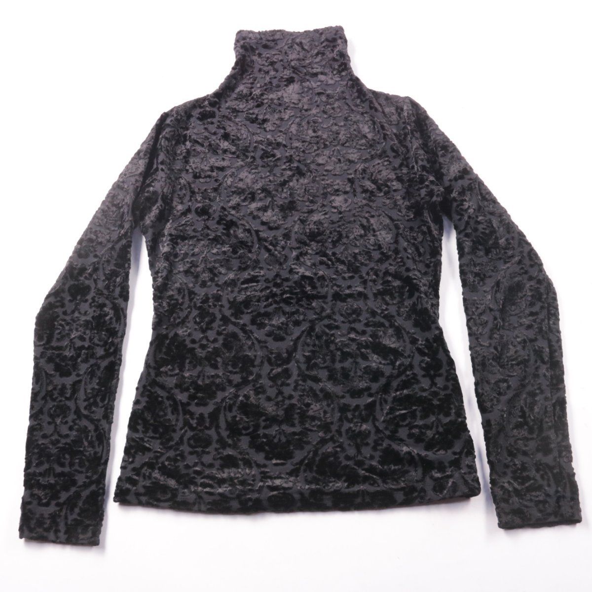 Женская водолазка с высоким воротником и длинным рукавом, выполнена из тёмного велюра с фактурным цветочным узором. Подойдёт для повседневной носки и более нарядных образов в прохладную погоду. Материал мягкий и комфортно сидит по фигуре.