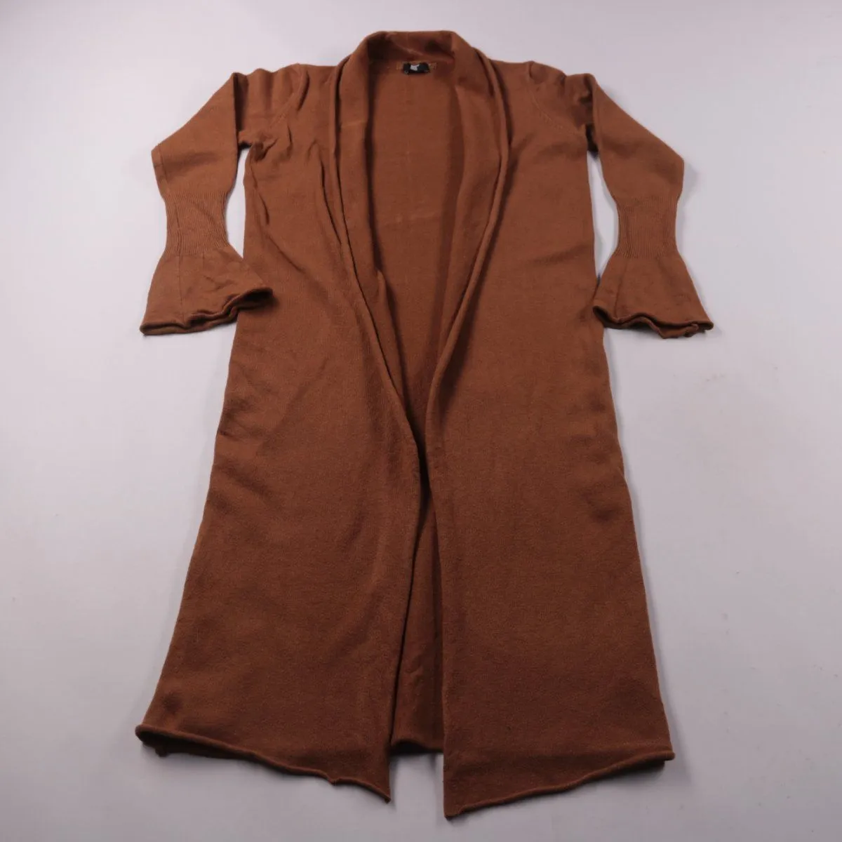Удлинённый трикотажный кардиган JOSS коричневого цвета с открытым передом. Подойдёт для повседневных образов и офиса в прохладную погоду, удобно носить слоями поверх топов и водолазок. Практичный плюс — мягкий материал и лёгкость в уходе.