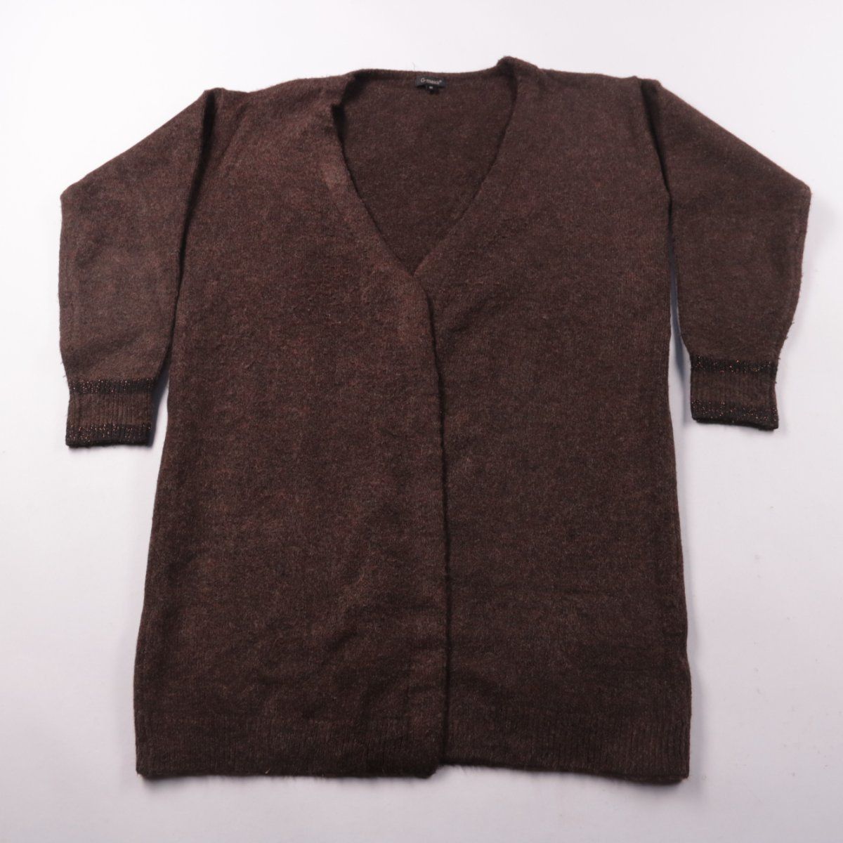 Женский вязаный кардиган с V-образным вырезом, бренд не указан. Подойдёт для повседневной носки и многослойных образов в прохладную погоду. Мягкий трикотаж со спандексом лучше держит форму и слегка тянется.