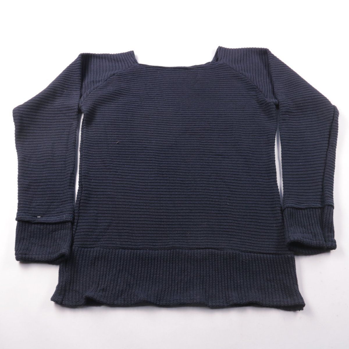 Вязаный джемпер в темно-синем цвете с фактурной резинкой и круглым вырезом. Подойдет для повседневных образов в прохладную погоду и как слой под куртку. Плотная вязка хорошо держит форму и легко сочетается с базовыми вещами.
