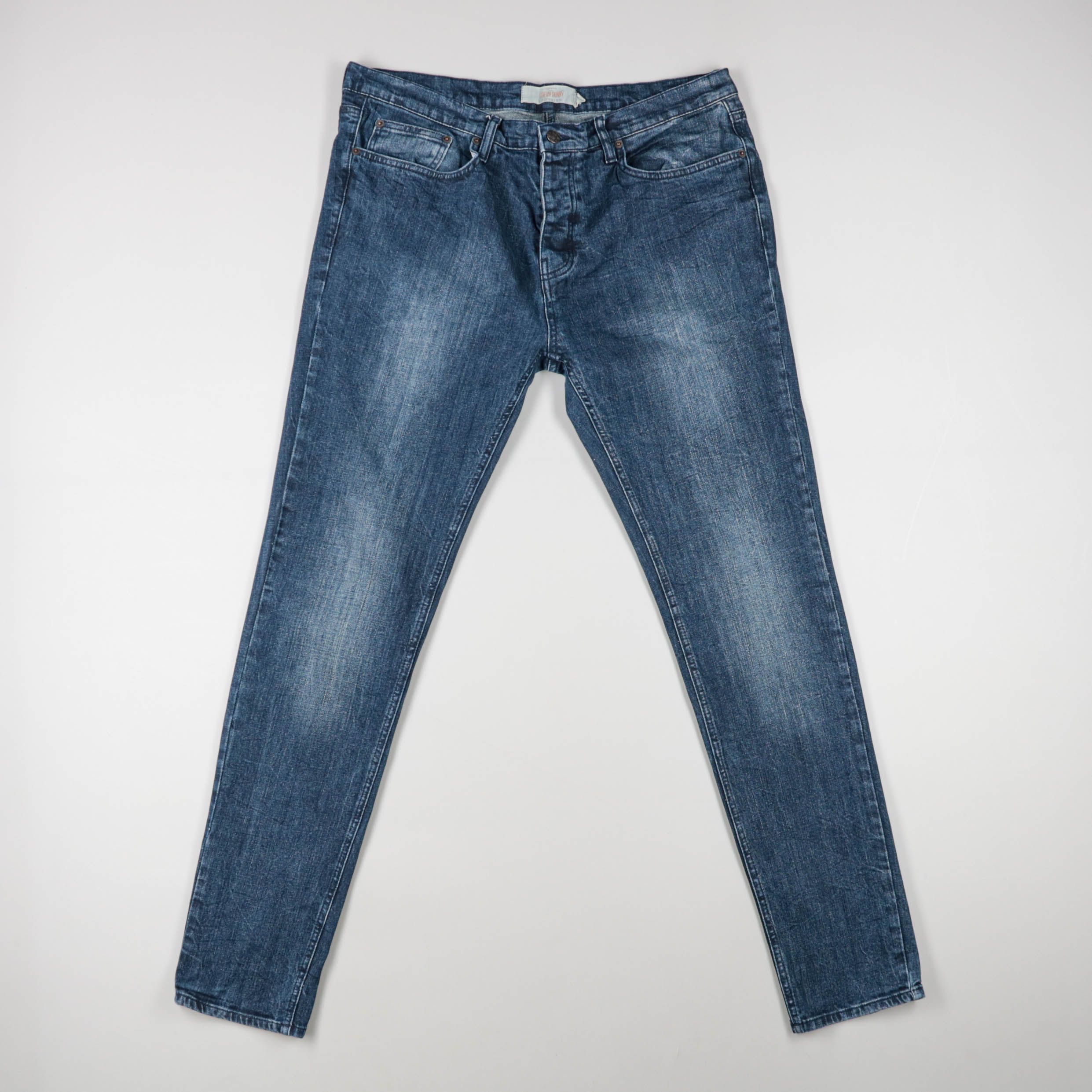 Мужские джинсы из денима в синем цвете с лёгким эффектом варки и классическими 5 карманами. Подойдут для повседневной носки и городских образов, хорошо сочетаются с кедами и ботинками. Плотная джинса практична в уходе и долго держит форму.