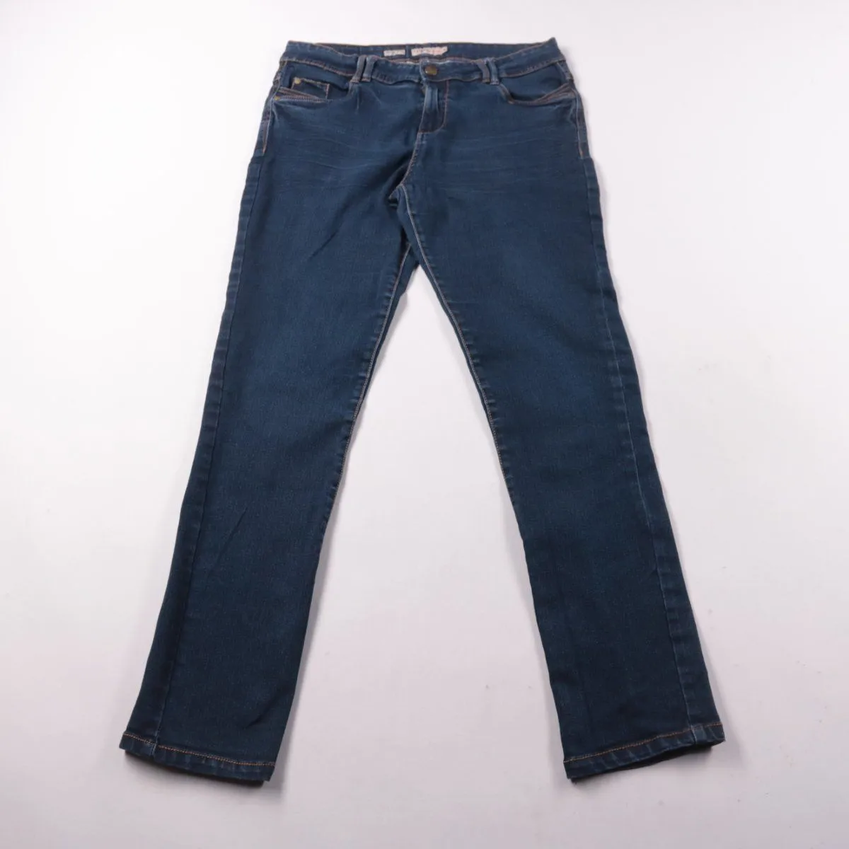Женские джинсы Pescara из тёмно-синего денима с пятью карманами и застёжкой на молнию. Подойдут на каждый день и для офиса в стиле casual благодаря спокойному оттенку. В составе есть эластан, поэтому ткань немного тянется и комфортнее садится по фигуре.