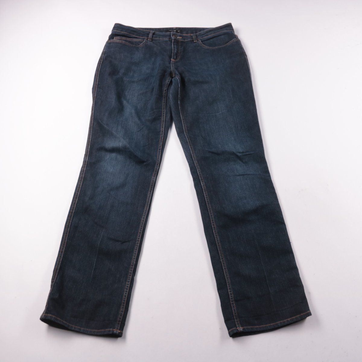 Женские джинсы comma, тёмно-синего цвета, классическая посадка с лёгким расклёшем к низу. Подойдут на каждый день и для офиса с рубашкой или джемпером. Плотный деним со стрейчем даёт более комфортную посадку.