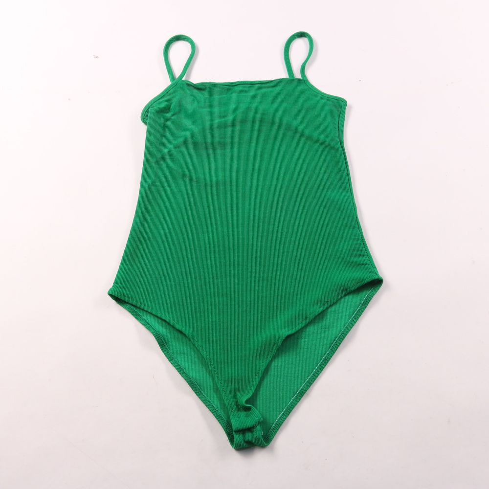Слитный купальник Stradivarius зелёного цвета с тонкими бретелями и фактурной тканью в рубчик. Подойдёт для пляжа и бассейна, лаконично смотрится как бодис под шорты или юбку. Эластичный материал хорошо тянется и комфортно сидит по фигуре.