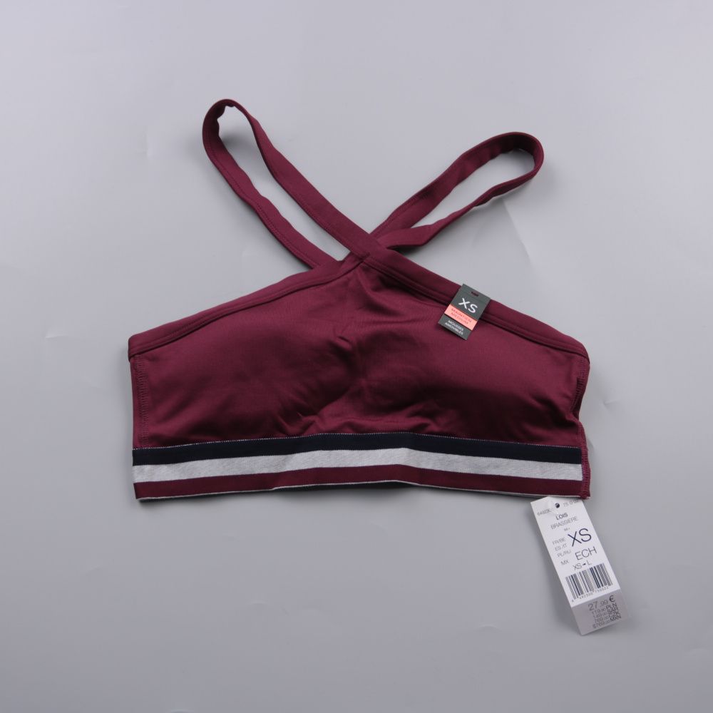Спортивный топ Be+ бордового цвета с перекрещенными бретелями и средней поддержкой. Подойдёт для тренировок и активных прогулок, мягкая эластичная ткань хорошо сидит и не сковывает движения.