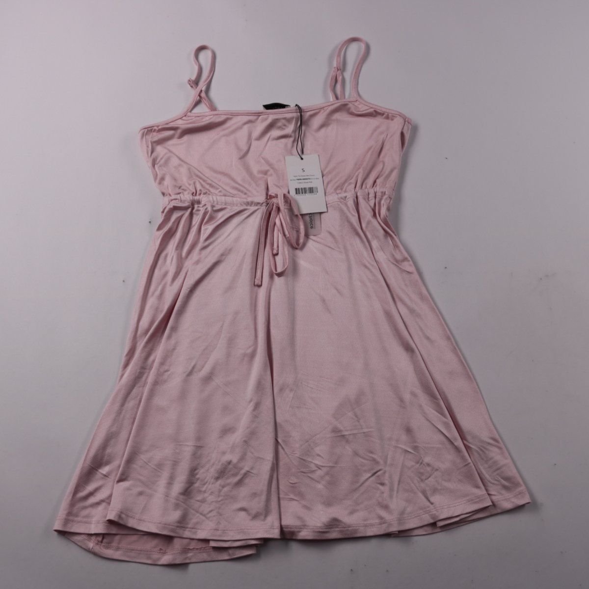 Женская сорочка NA-KD нежно-розового цвета на тонких бретелях, с мягкой сборкой и регулируемой кулиской на талии. Подойдёт для сна и домашнего отдыха благодаря лёгкому гладкому материалу. Бирки сохранены, удобно подгоняется по фигуре за счёт завязок.