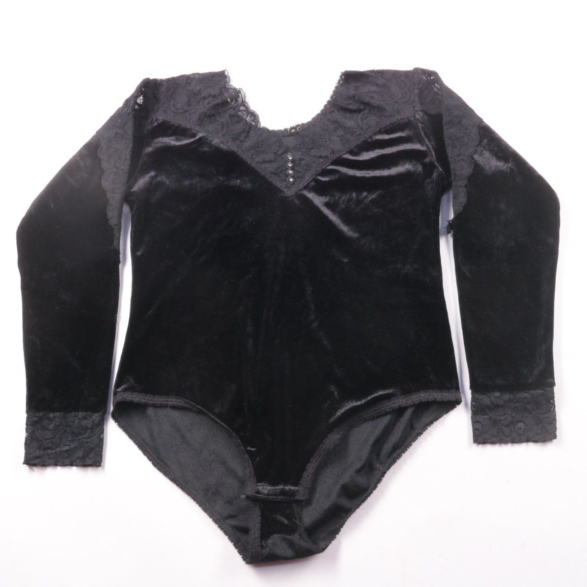 Бархатное боди KA с кружевной отделкой по вырезу и манжетам, чёрного цвета. Подойдёт для образов на выход, фотосессий или как нижний слой под жакет. Тянущийся материал комфортно садится по фигуре и не сковывает движения.