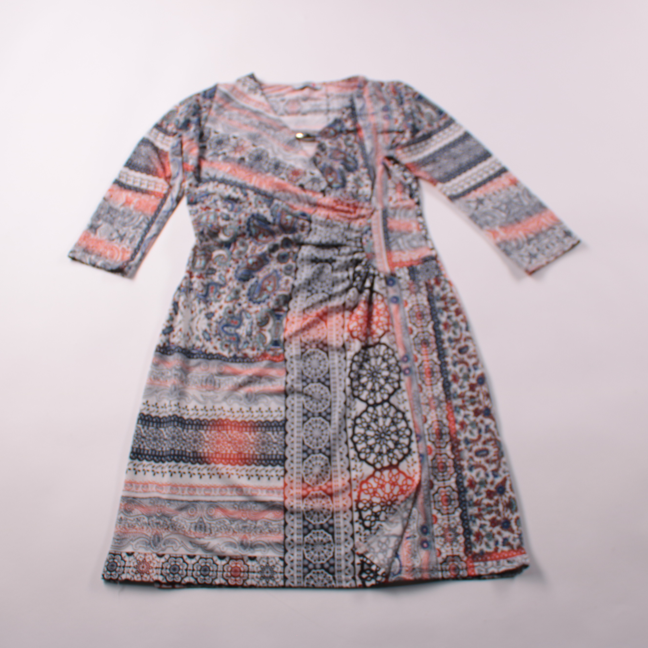 Повседневное платье Carnaby с рукавом 3/4 и V-образным вырезом, выполнено из лёгкой ткани с ярким комбинированным узором. Подойдёт для прогулок и летних встреч, хорошо сочетается с однотонной обувью и аксессуарами. Материал почти не мнётся и удобно нос...