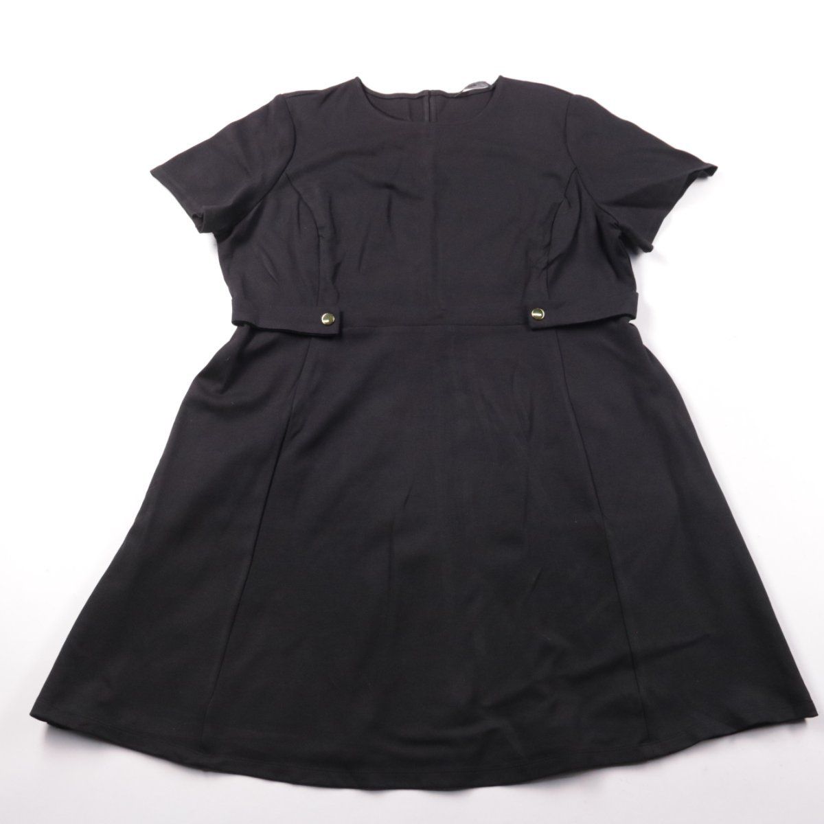 Черное повседневное платье George с короткими рукавами, расклешенной юбкой и декоративными элементами на талии. Подойдет для офиса, учебы и повседневных выходов в любое время года. Эластичная ткань помогает платью комфортно сидеть по фигуре.