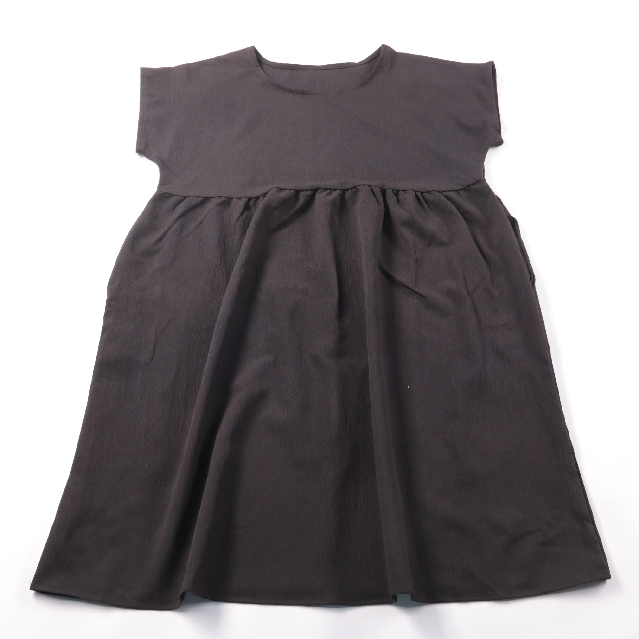 Повседневное платье свободного кроя без бренда, чёрного цвета, с коротким рукавом и завышенной линией талии со сборкой. Подойдёт для повседневной носки и комфортных образов на каждый день. Практичный плюс — ткань с добавлением эластана слегка тянется и...