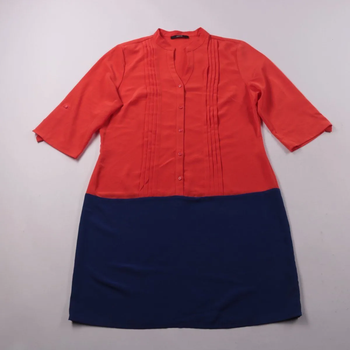 Повседневное платье George прямого кроя с застёжкой на пуговицы и рукавом 3/4. Двухцветный дизайн (красный верх и синий низ) подойдёт для офиса и на каждый день. Материал из полиэстера практически не мнётся и прост в уходе.