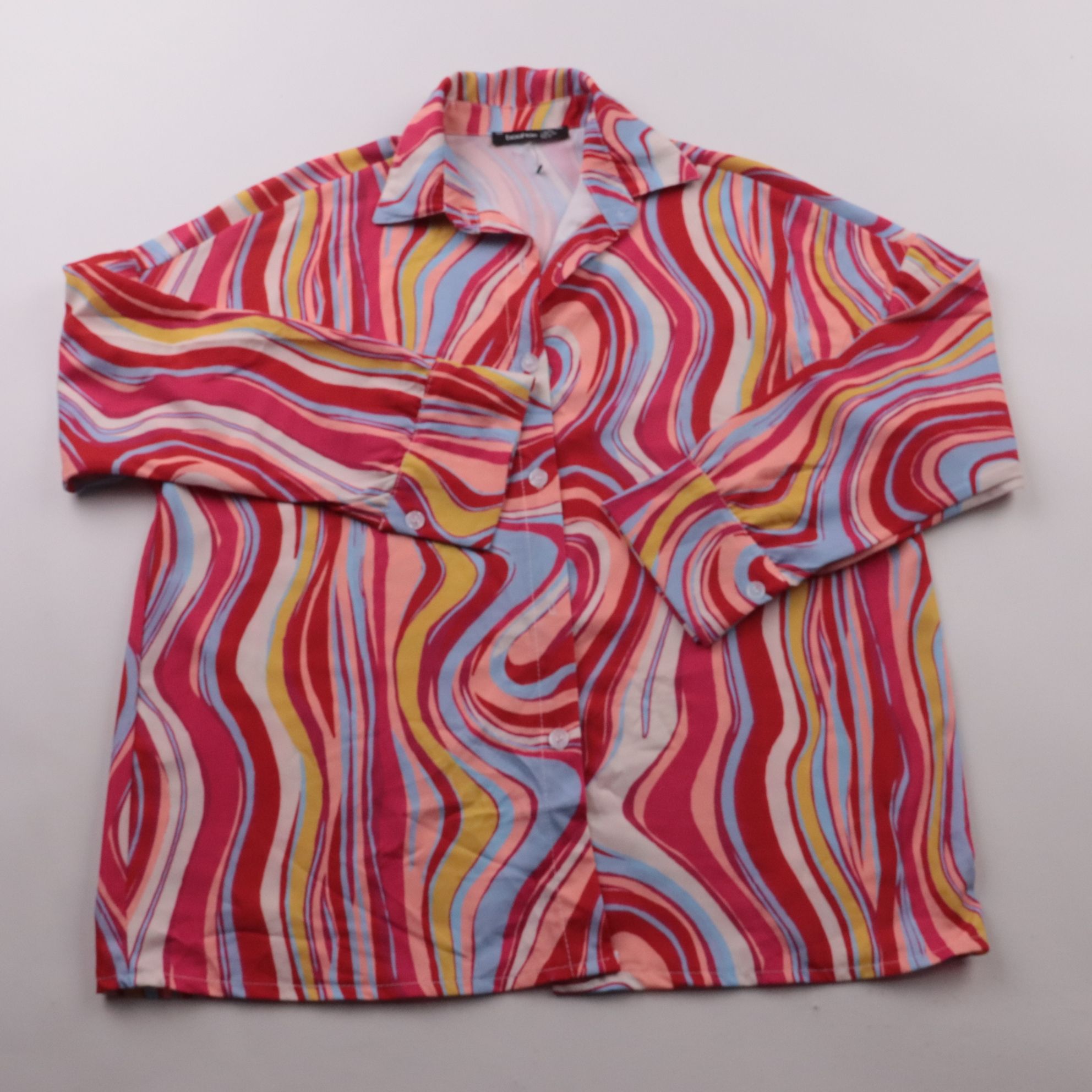 Женская блузка Boohoo с длинным рукавом и ярким волнистым разноцветным принтом. Подойдёт для летних прогулок и отпускных образов, легко сочетается с джинсами или однотонными брюками. Практичный плюс — тонкая ткань и застёжка на пуговицы, удобно носить ...