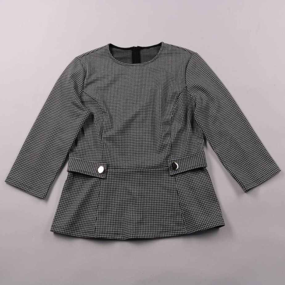 Женская блузка H&M в мелкую чёрно-белую «гусиную лапку», с круглым вырезом и длинными рукавами. Подойдёт для офиса и повседневных образов с брюками или юбкой, аккуратный силуэт смотрится строго. Ткань со стрейчем, поэтому вещь комфортно садится по фигу...