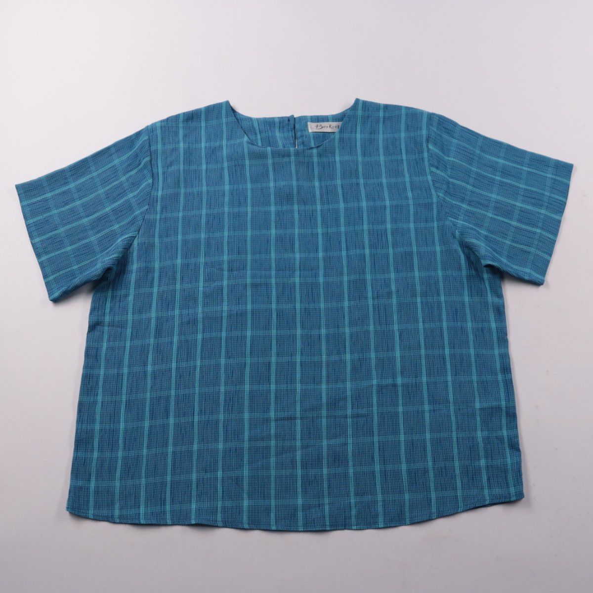 Женская блузка Berkertex из ткани в клетку, с коротким рукавом и застёжкой на пуговицу сзади у горловины. Подойдёт для повседневных образов и офиса в тёплую погоду. Практичный плюс — полиэстер почти не мнётся и быстро сохнет после стирки.