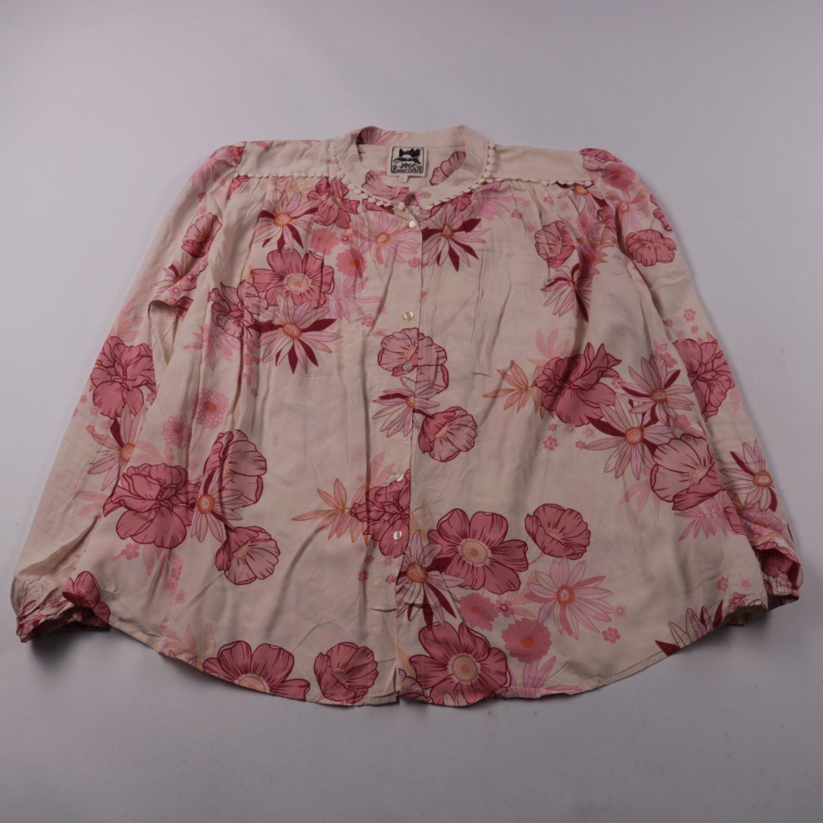 Женская блузка Jane из вискозы с цветочным принтом и застёжкой на пуговицы. Подойдёт для повседневных образов и на работу в демисезон, особенно с брюками или джинсами. Лёгкая ткань хорошо дышит и комфортна в носке.