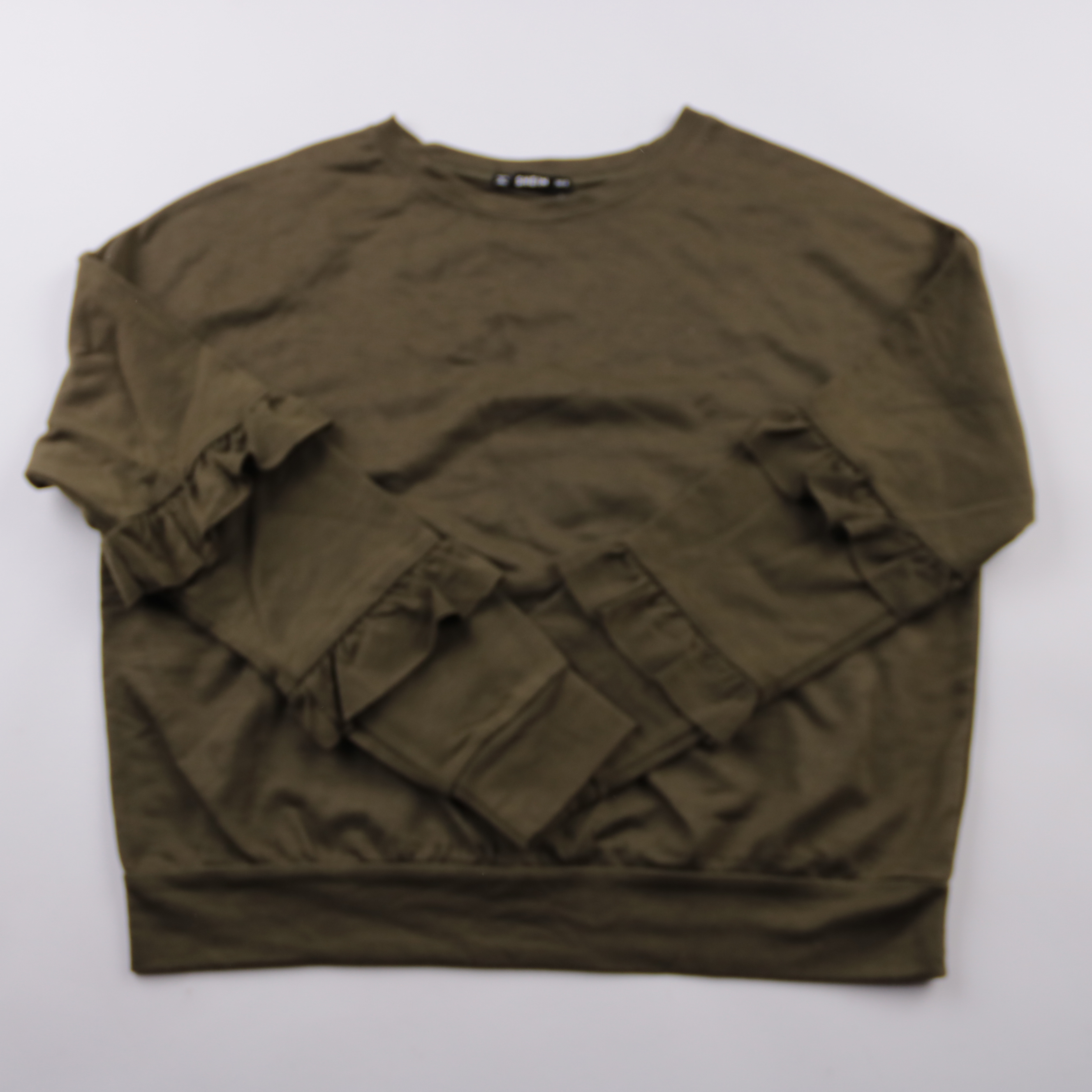 Свитшот Shein цвета хаки, без капюшона, с декоративными объёмными элементами спереди. Подойдёт для повседневных образов в прохладную погоду и для прогулок. Материал с добавлением эластана слегка тянется и комфортно садится по фигуре.