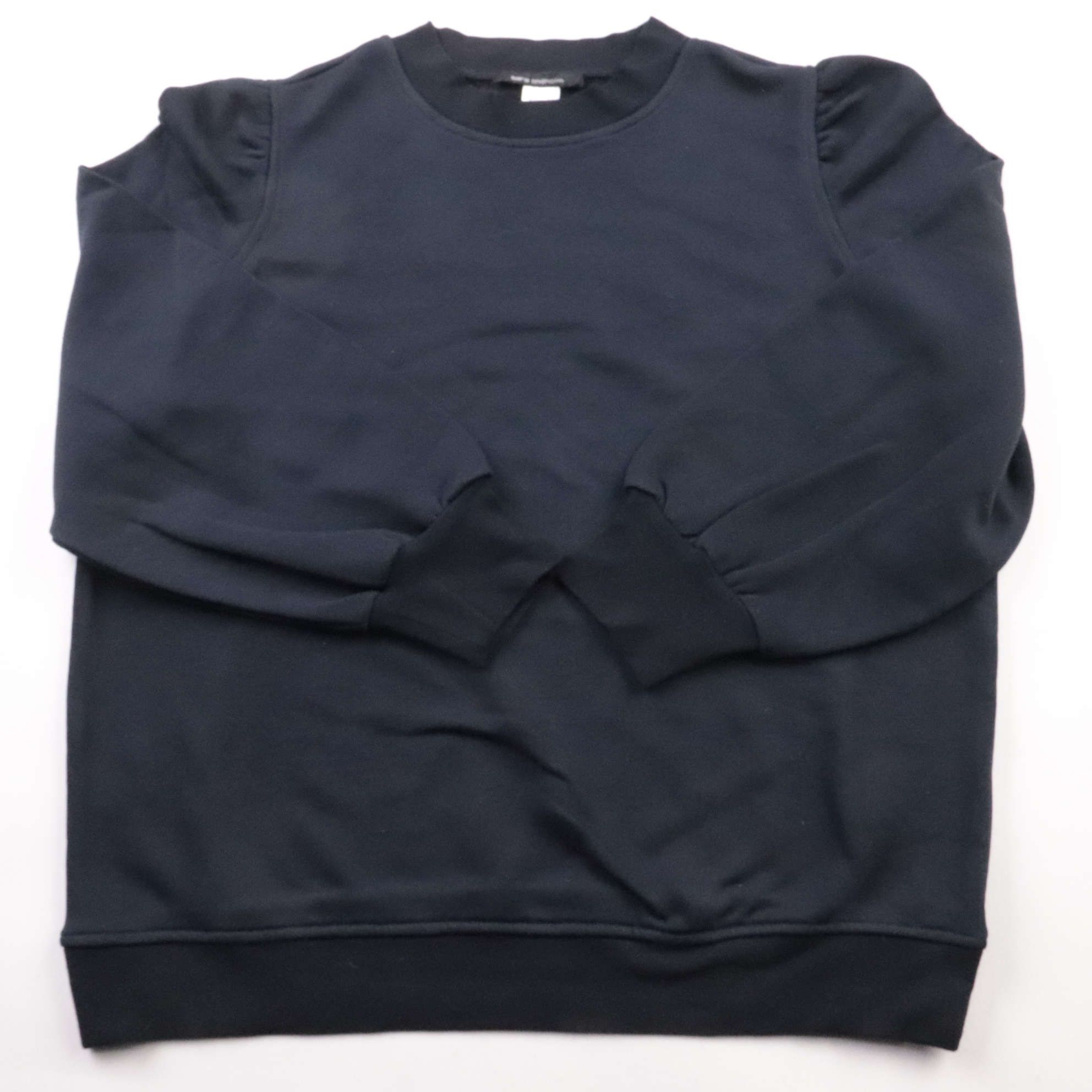 Женский свитшот Sara Lindholm тёмно-синего цвета с круглым вырезом и лёгкими сборками на плечах. Подойдёт для повседневных образов и офиса в стиле casual, хорошо смотрится с джинсами или юбкой. Плотный трикотаж держит форму и комфортен в носке.