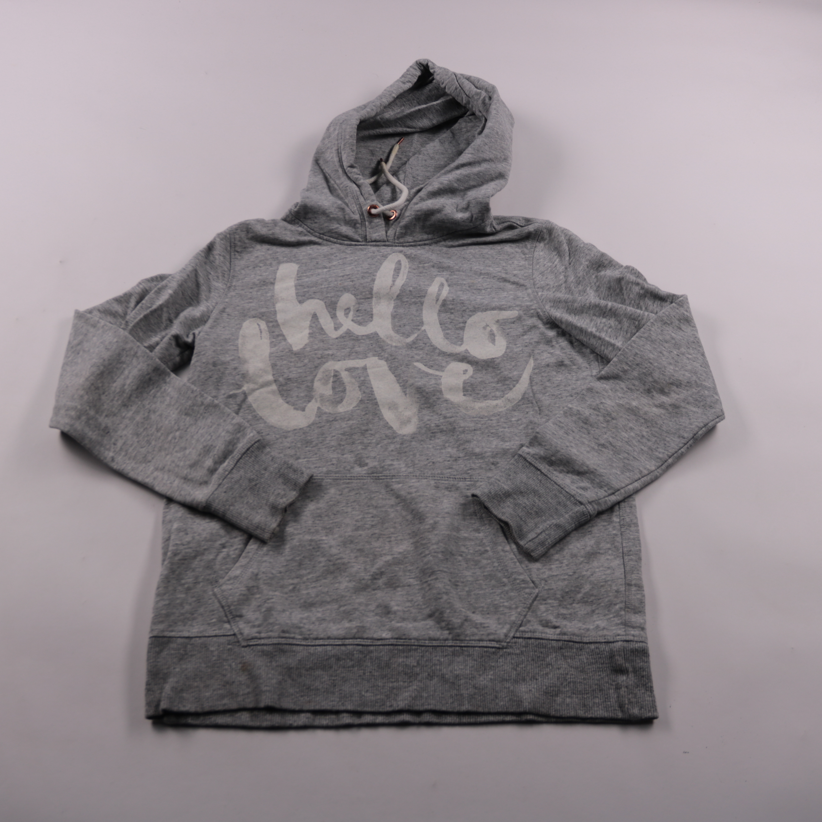 Женская толстовка-худи L.lot серого меланжа с принтом «hello love», капюшоном на шнурке и карманом-кенгуру. Подойдёт для прогулок и повседневных образов в прохладную погоду. Мягкий футер с начёсом внутри хорошо сохраняет тепло и комфортен в носке.