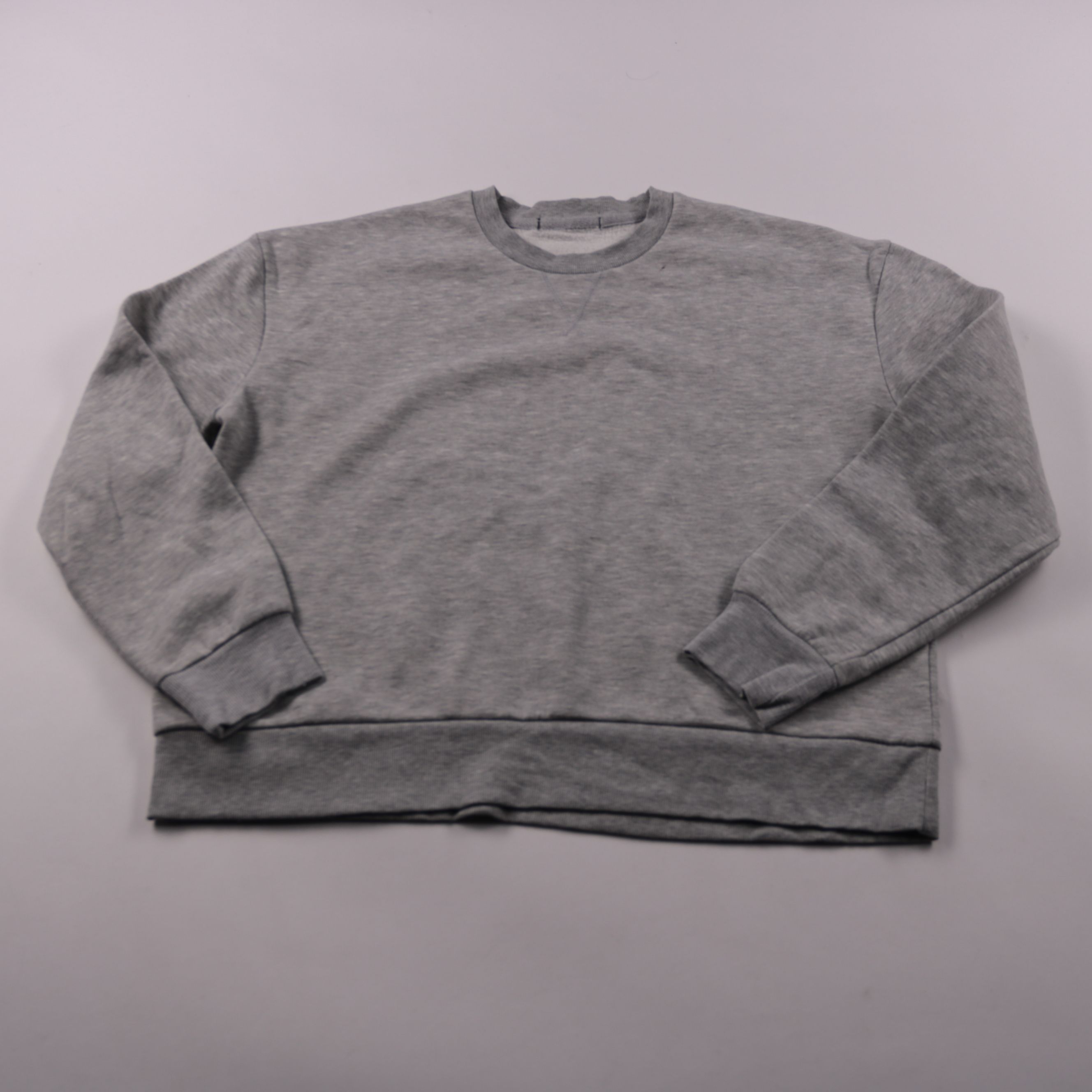 Серый свитшот без бренда, классический крой с круглым вырезом и мягкой флисовой изнанкой. Подойдёт для повседневных образов и прогулок в прохладную погоду, легко сочетается с джинсами и спортивными брюками. Тёплый и комфортный, не требует сложного ухода.