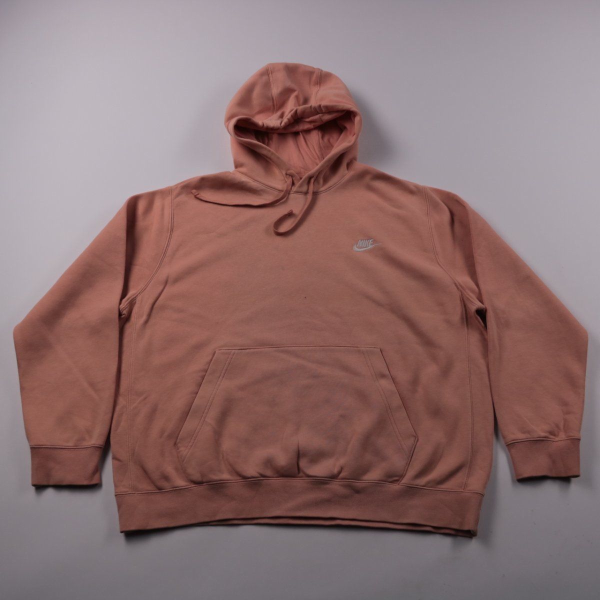Худи Nike пудрово-розового цвета с капюшоном, шнурком и карманом-кенгуру. Подойдёт для повседневных образов и прогулок в прохладную погоду, хорошо сочетается с джинсами и спортивными брюками. Мягкая хлопковая ткань комфортна и проста в уходе.