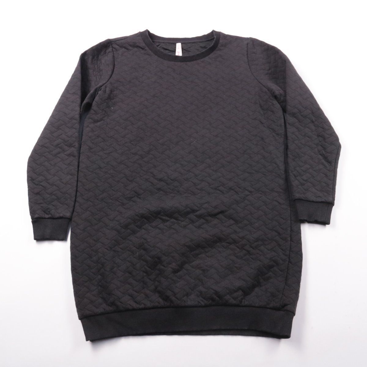 Стёганый свитшот Miss E чёрного цвета с круглым вырезом и манжетами. Подойдёт для повседневных образов в прохладную погоду и на демисезон. Практичный за счёт плотной фактурной ткани, хорошо держит форму.