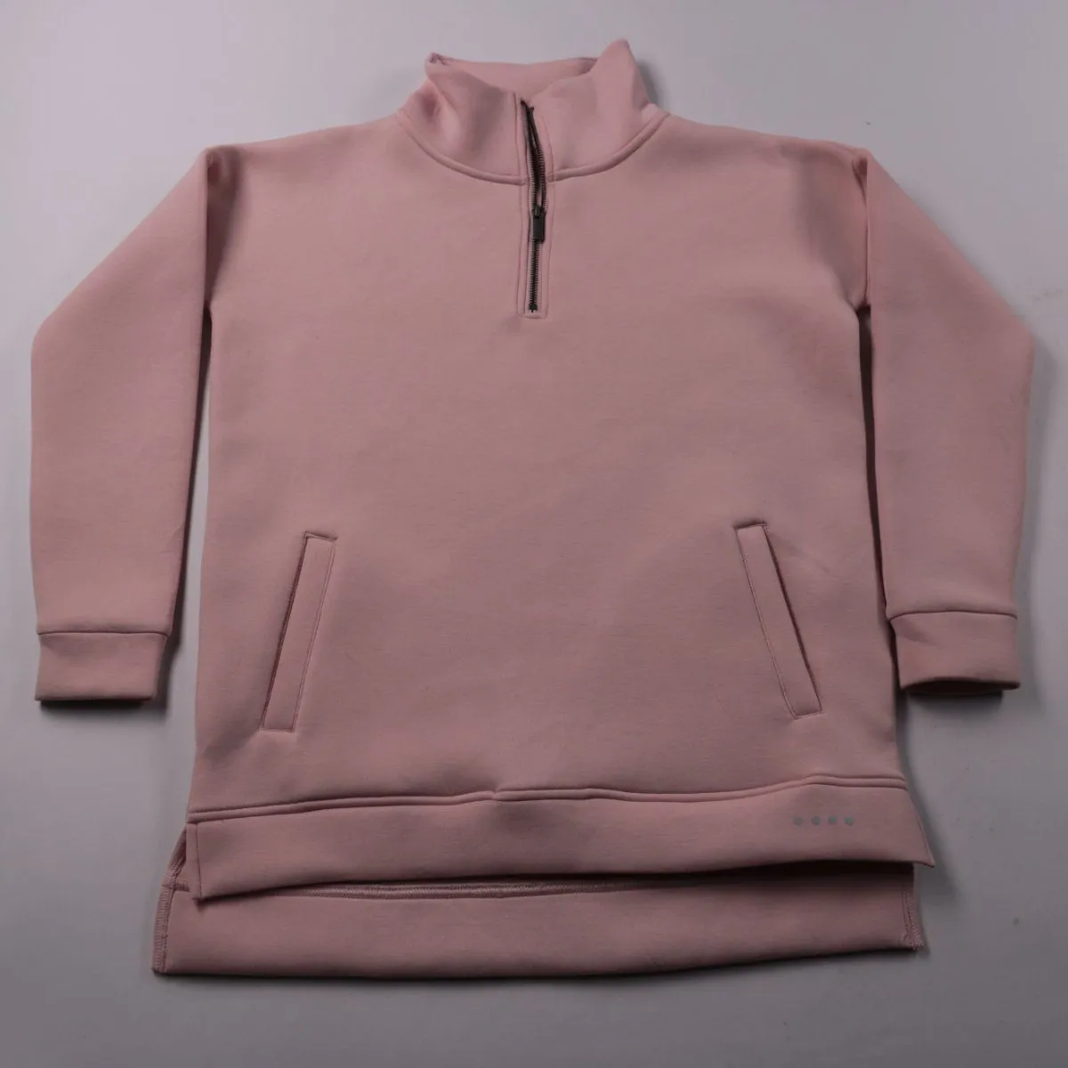 Свитшот Souluxe пудрово-розового цвета с воротником-стойкой и короткой молнией. Подойдёт для повседневных образов и прогулок, есть боковые карманы. Ткань тянется за счёт эластана и удобна для многослойности.