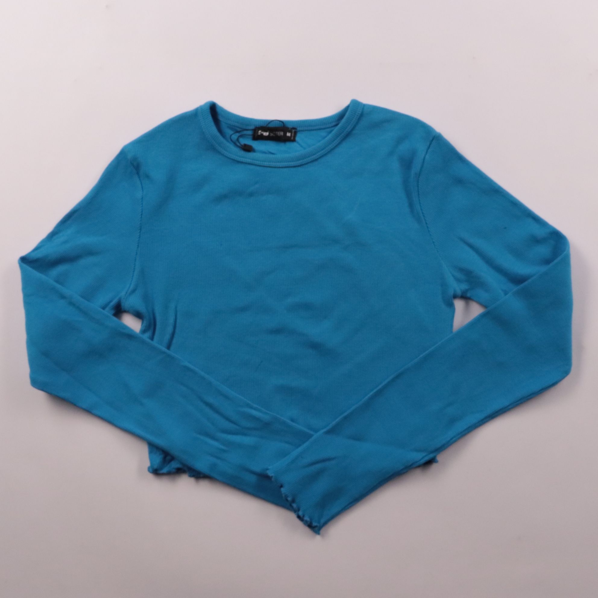 Женский лонгслив FB Sister голубого цвета из эластичного хлопкового трикотажа. Подойдёт для повседневных образов и как базовый слой в прохладную погоду. Ткань тянется и комфортно садится по фигуре.