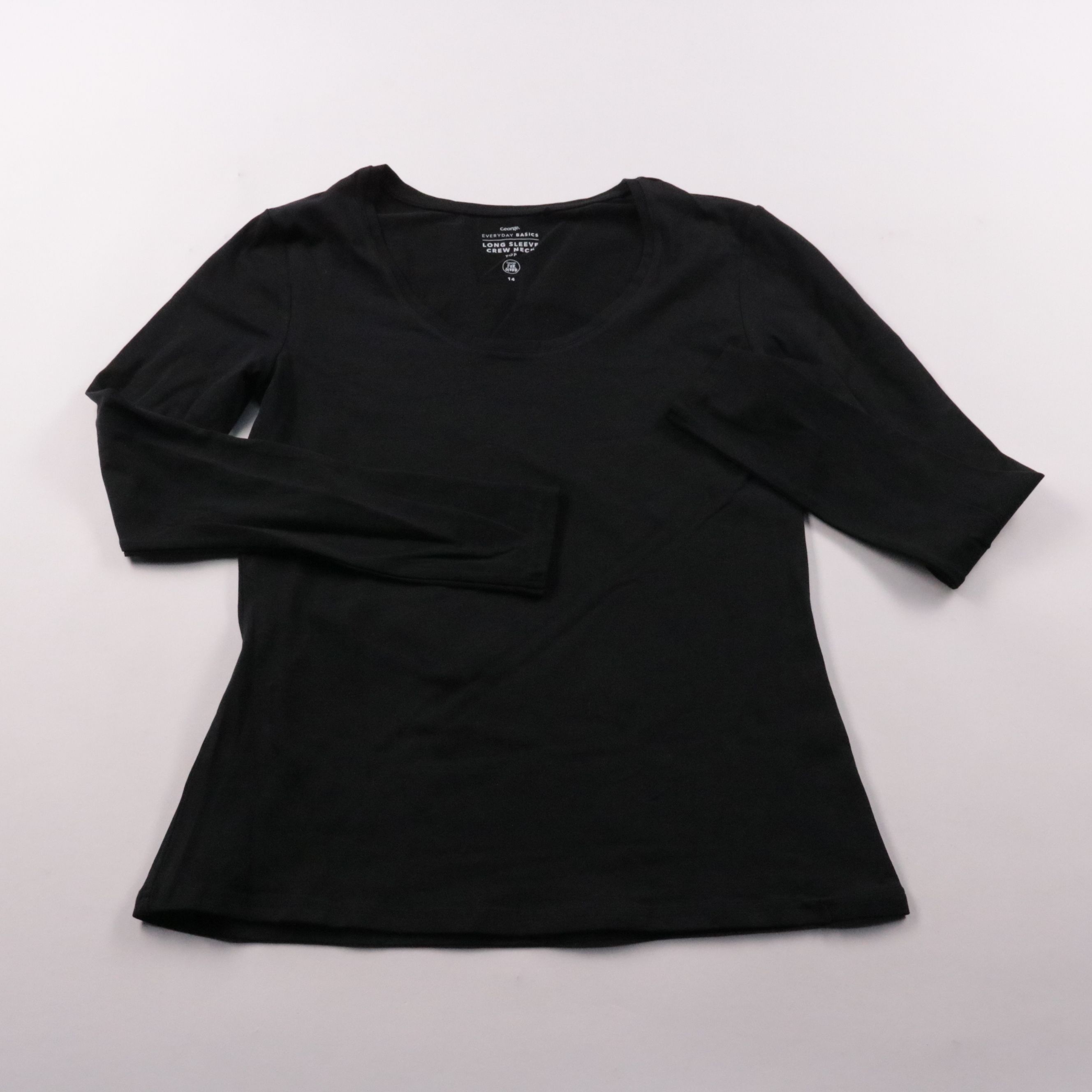 Чёрный лонгслив George с округлым вырезом и рукавом 3/4 — базовая вещь на каждый день. Подойдёт для офиса и повседневных образов, легко комбинируется с джинсами, брюками и юбками. Практичный немаркий цвет и гладкая ткань удобны в носке и уходе.