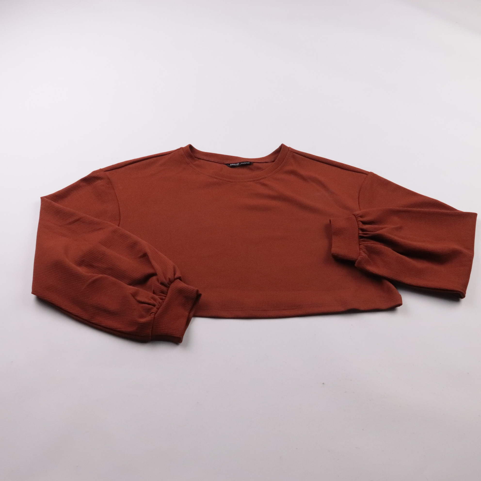 Лонгслив Shein в рубчик кирпично-коричневого цвета с объёмными рукавами и широкими манжетами. Подойдёт для повседневных образов в прохладную погоду, легко сочетается с джинсами и юбками. Ткань с добавлением спандекса тянется и комфортно сидит по фигуре.