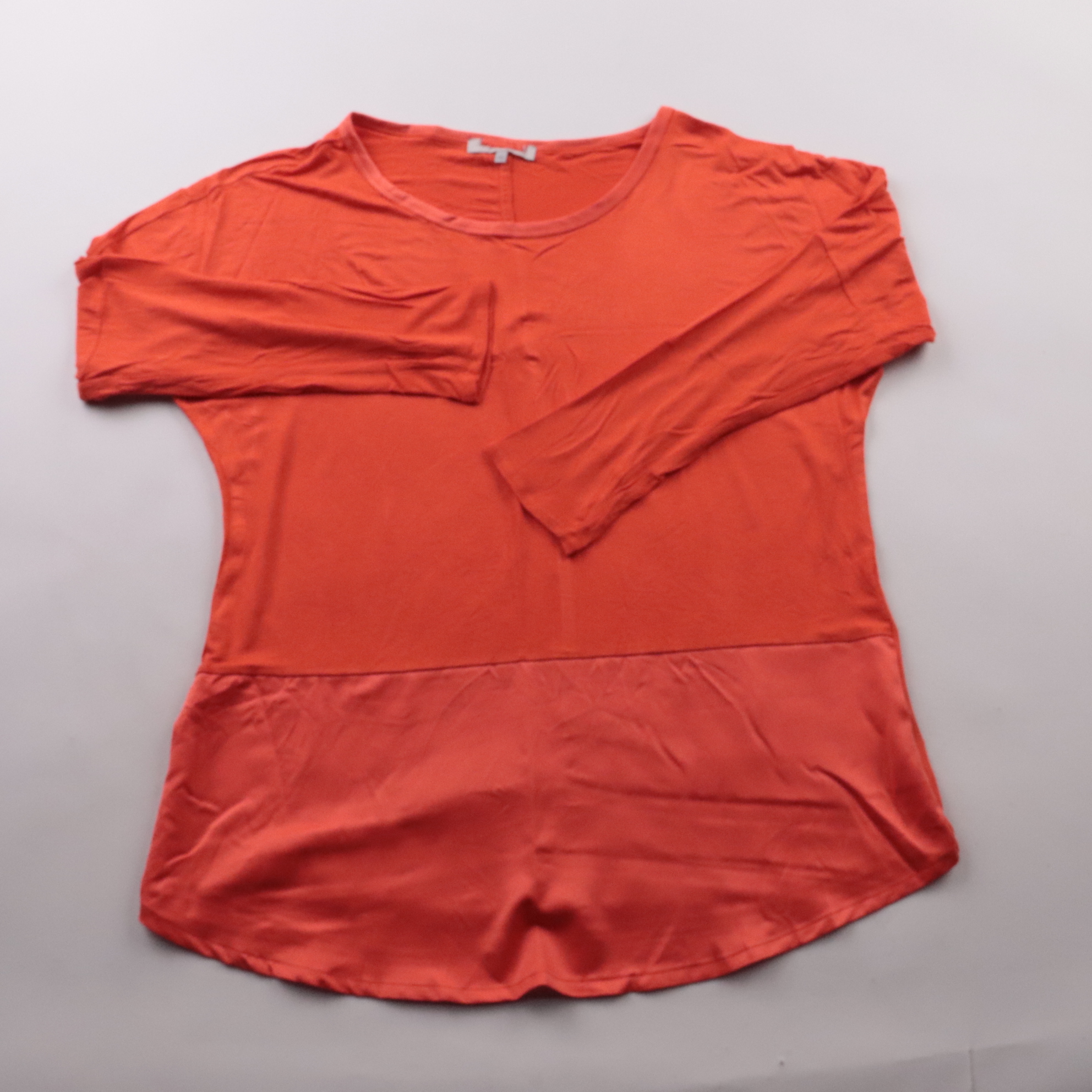 Туника Morrisons кораллового цвета с круглым вырезом и удлинённой спинкой. Подойдёт для повседневных образов и офиса с брюками или легинсами. Вискоза с добавлением эластана мягкая и тянется, а вставка спереди из полиэстера держит форму.
