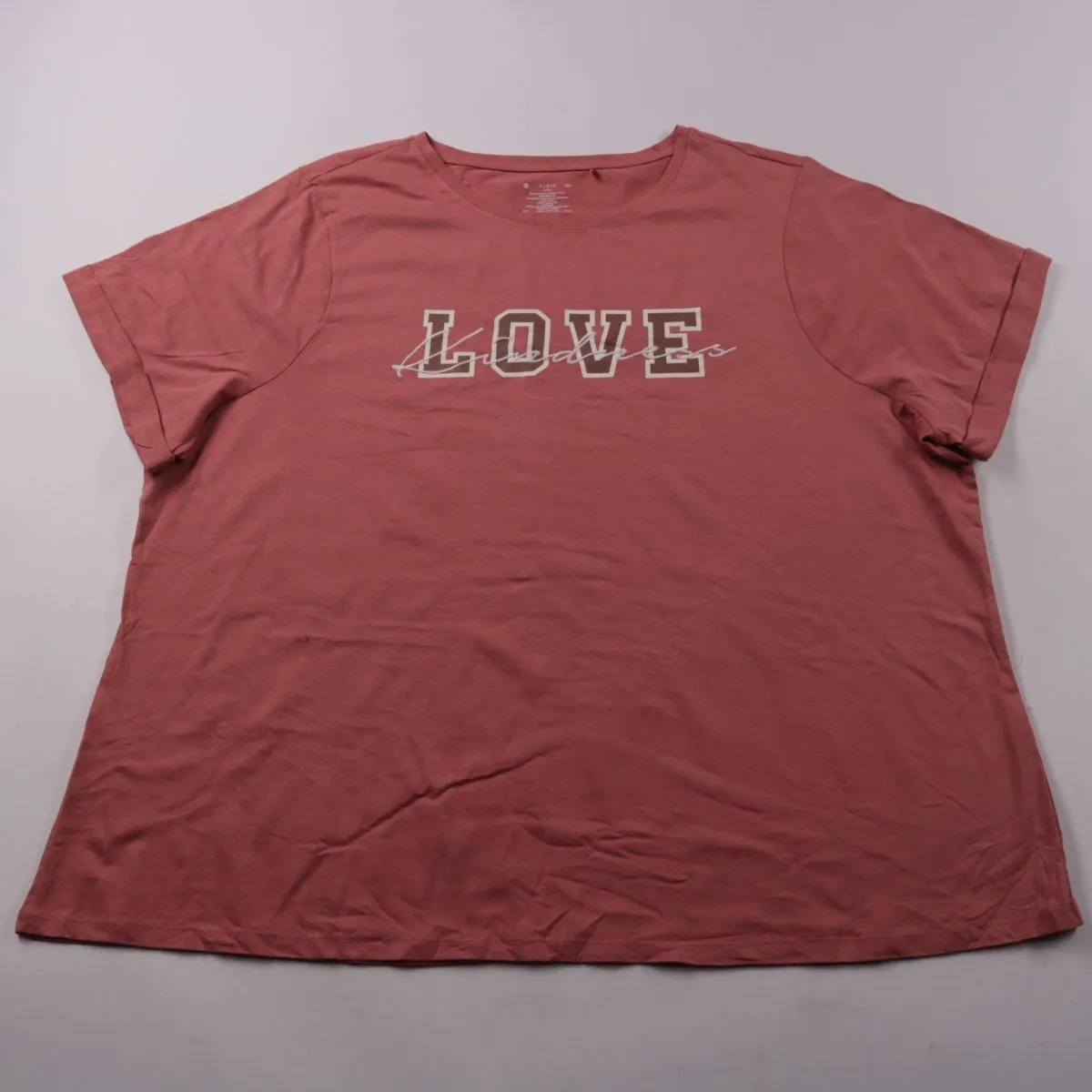 Футболка Curve из хлопка в розовом оттенке с принтом «LOVE». Подойдёт для повседневной носки и домашнего гардероба. Мягкий материал хорошо дышит и комфортен в течение дня.