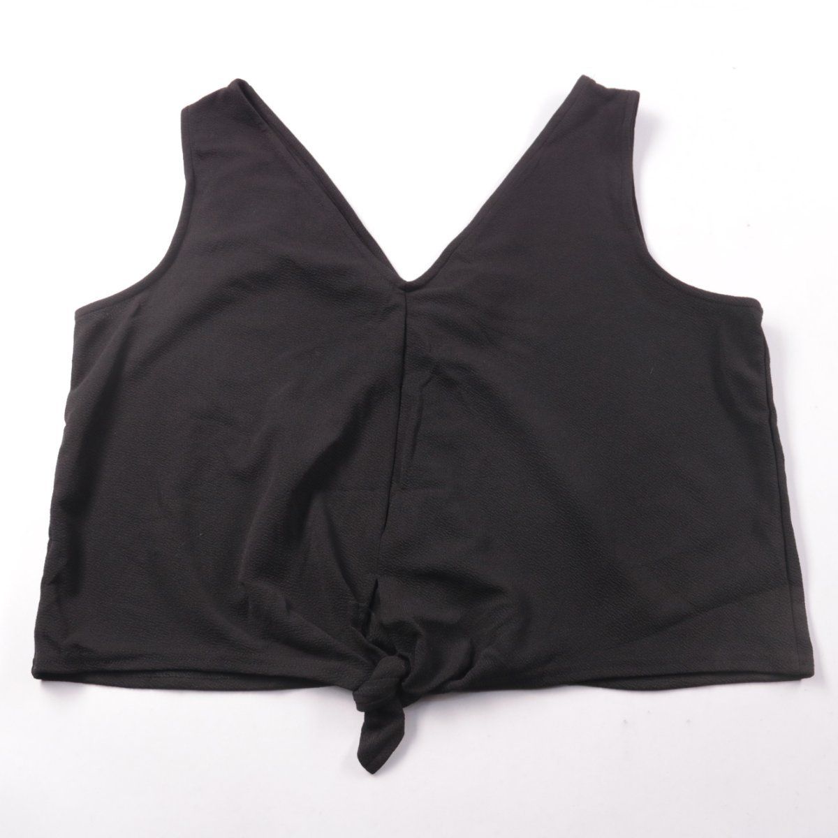 Женский топ Anko чёрного цвета с V-образным вырезом и узлом спереди. Подойдёт для лета и отпускных образов, хорошо сочетается с джинсами и шортами. Ткань с добавлением эластана немного тянется и комфортно садится по фигуре.