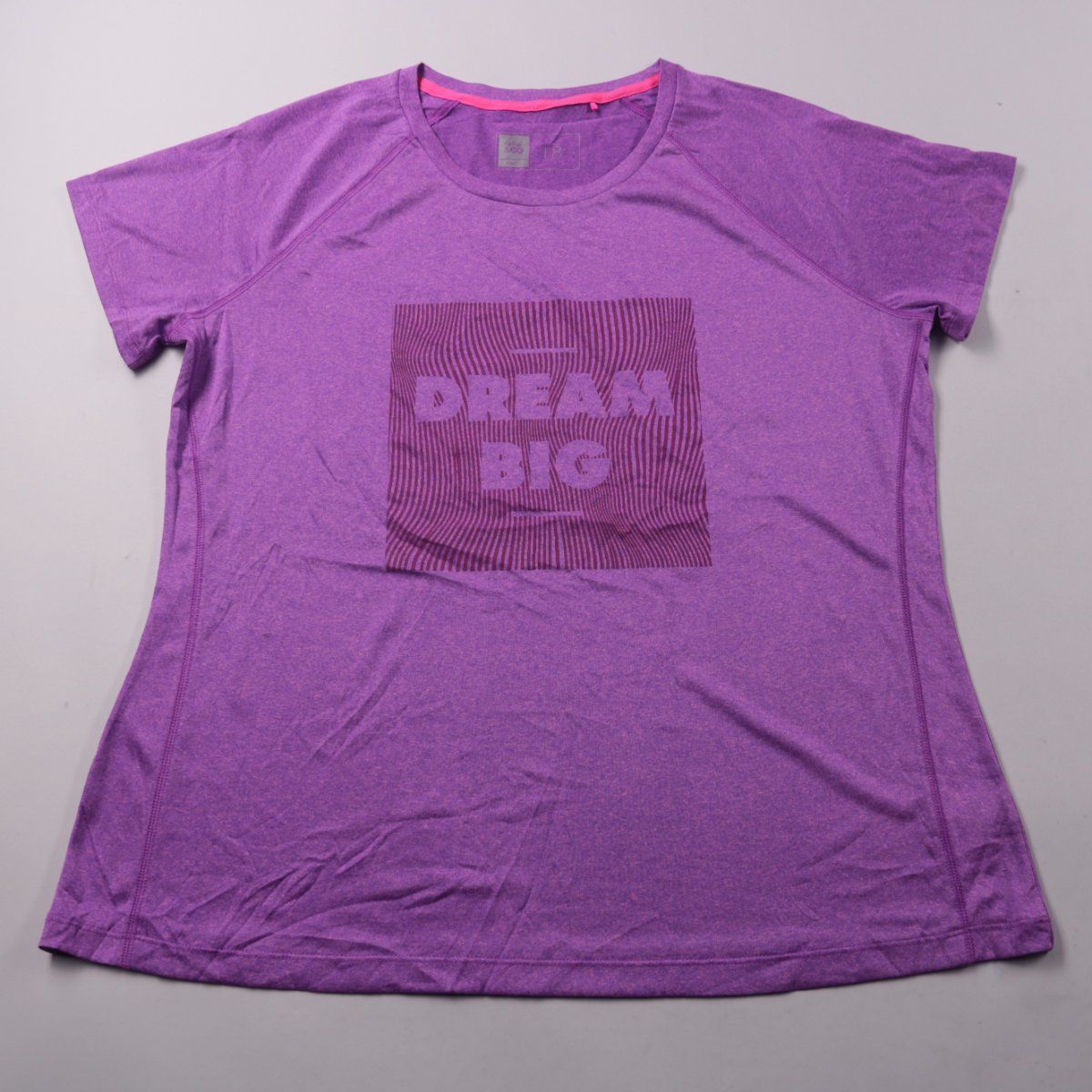 Футболка Active & co из спортивной линейки Fitness, фиолетового цвета с принтом на груди. Подойдёт для тренировок и повседневной носки в тёплую погоду или как базовый слой. Материал из полиэстера быстро сохнет и прост в уходе.