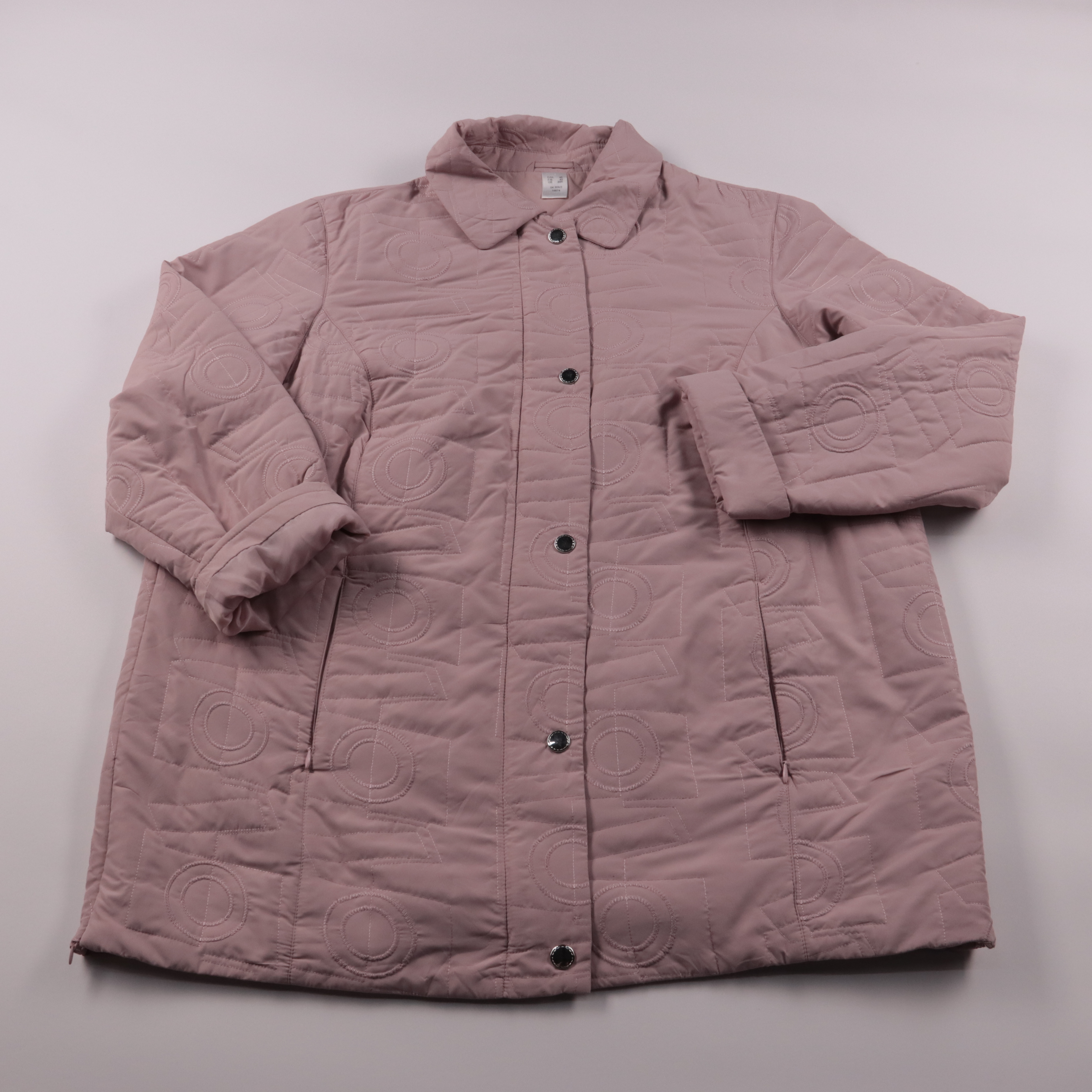 Стёганая демисезонная куртка с фактурным рисунком и отложным воротником. Подойдёт для прохладной весны и осени, удобно носить каждый день с джинсами или брюками. Практичный плюс — лёгкий полиэстер и застёжка на кнопки, за вещью просто ухаживать.