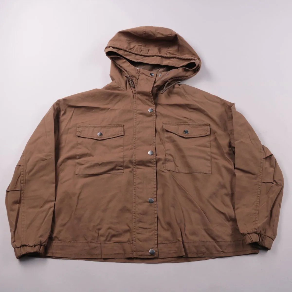 Лёгкая куртка с капюшоном ONLY в цвете Cub, застёгивается на кнопки и имеет накладные карманы с клапанами. Подойдёт для весны/осени и прохладных летних вечеров в повседневных образах. Практичный плюс — регулируемый капюшон и плотная хлопковая ткань с добавлением нейлона.