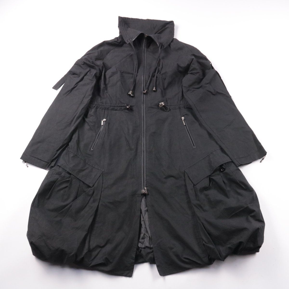 Женское пальто Franstyle чёрного цвета на молнии с высоким воротником и утяжкой на талии. Подойдёт для повседневной носки в прохладную погоду и поездок по городу. Практично тем, что хорошо закрывает от ветра и имеет удобные карманы на молнии.