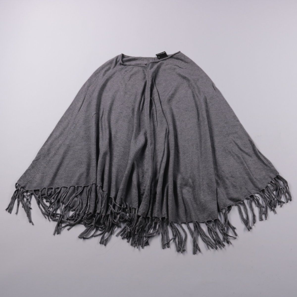 Женское пончо Creazioni серого цвета с бахромой по краю. Подойдёт для прохладной погоды в демисезон и как накидка поверх повседневных образов. Лёгкий трикотажный материал мягко драпируется и не стесняет движений.