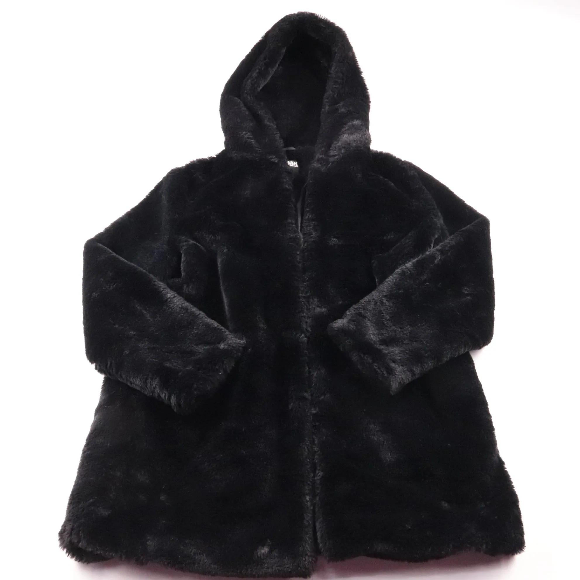 Чёрная шуба Urban Classics из мягкого искусственного меха, модель с капюшоном и застёжкой спереди. Подойдёт для повседневной носки в холодную погоду и прогулок по городу. Практична в уходе благодаря полиэстеровому материалу и подкладке.