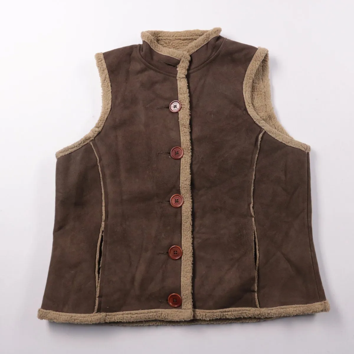 Жилет Bohdan из мягкого материала под замшу с тёплой подкладкой из искусственного меха. Подойдёт для прогулок и поездок в прохладную погоду, удобно носить поверх свитера или худи. Застёгивается на пуговицы и не стесняет движений благодаря отсутствию рукавов.