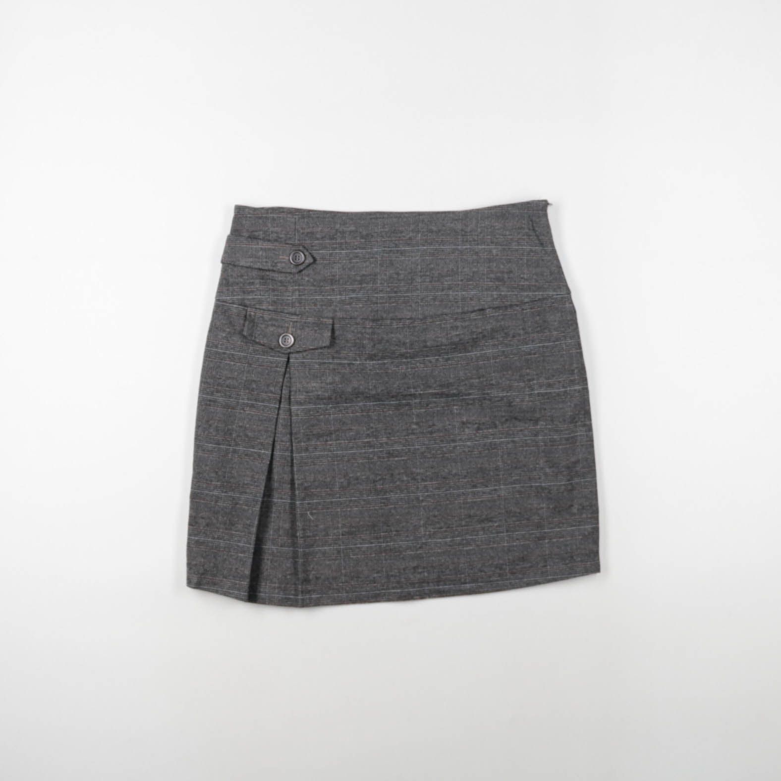 Женская юбка мини из плотной костюмной ткани серого цвета с неброским узором. Подойдёт для офиса и повседневных образов, хорошо сочетается с рубашками и трикотажем. Практичный плюс — ткань держит форму и не выглядит мнущейся.
