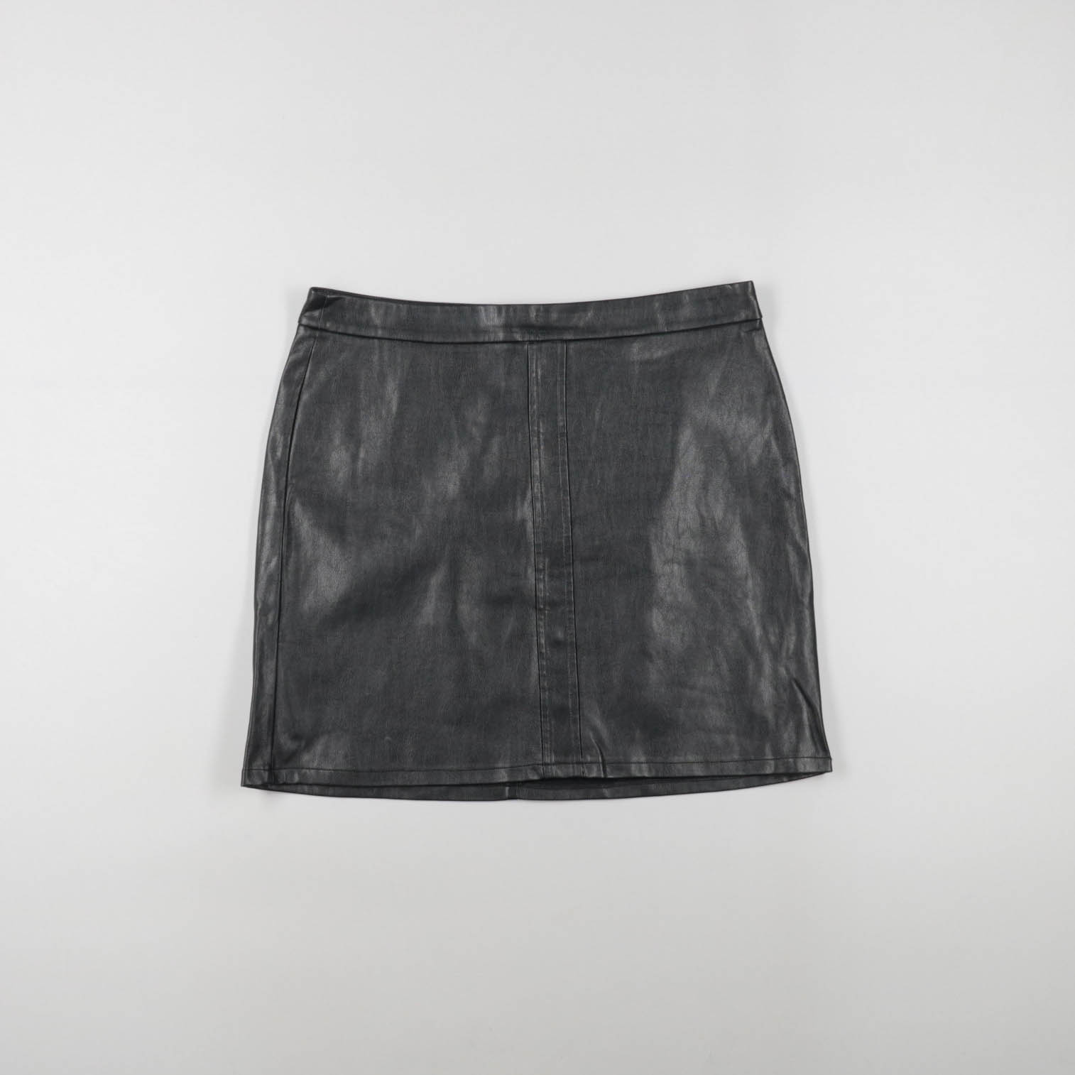 Короткая чёрная юбка из экокожи с лаконичным кроем и аккуратными швами. Подойдёт для повседневных образов и вечера, легко сочетается с водолазками, рубашками и жакетами. Практичное преимущество — материал просто протирается и не требует сложного ухода.