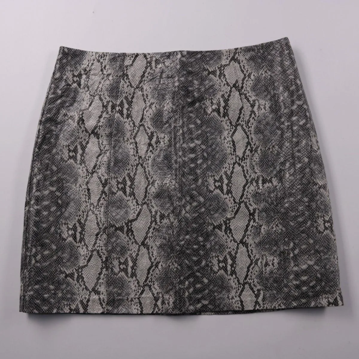 Юбка New Look с анималистичным принтом под змеиную кожу и прямым мини-силуэтом. Подойдёт для повседневных образов и вечерних выходов с однотонным верхом и обувью на каблуке. Практичное преимущество — есть подкладка, поэтому ткань меньше просвечивает и комфортнее в носке.