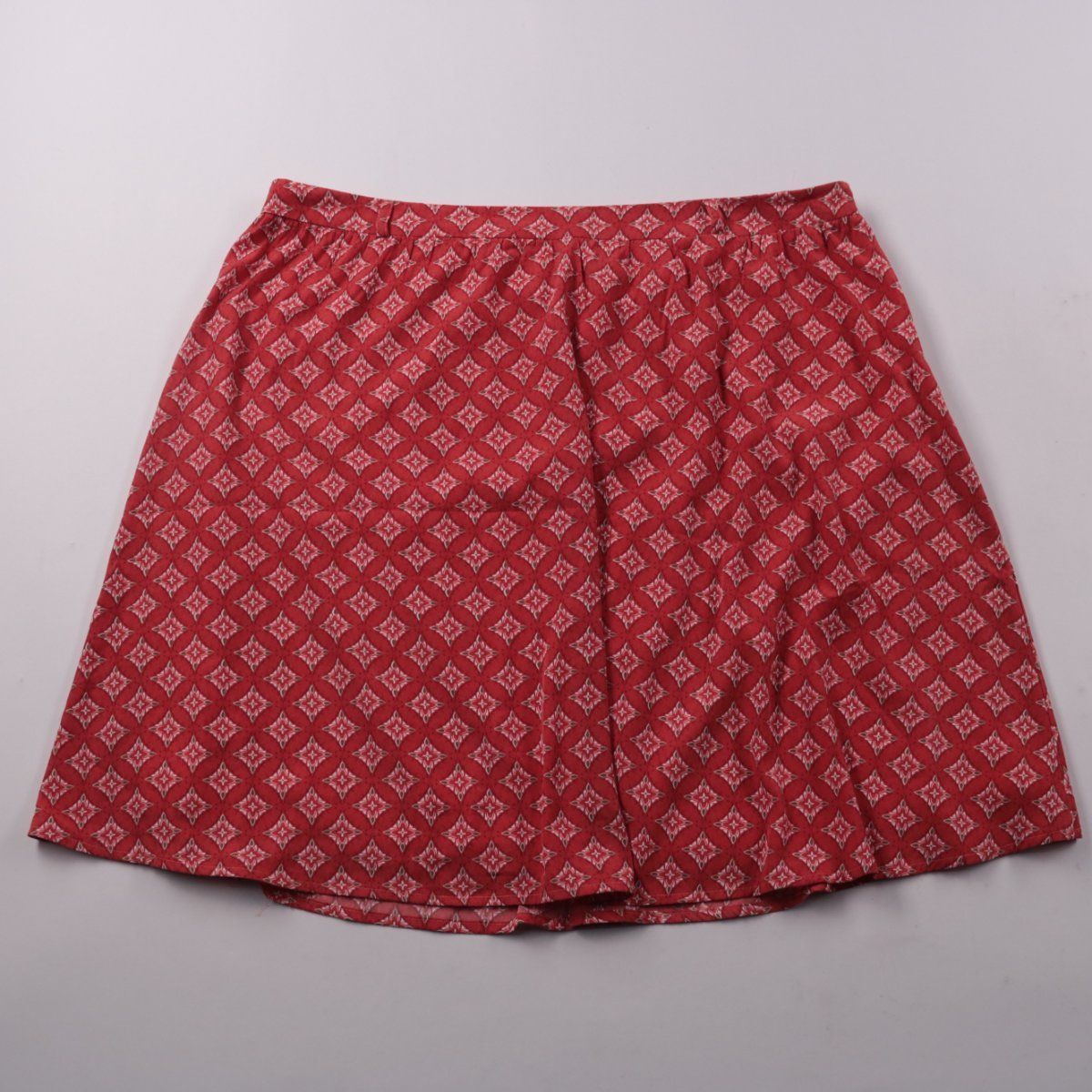 Юбка Yessica красного цвета с мелким геометрическим принтом и подкладкой. Подойдёт для повседневных летних образов и офиса с базовой блузкой или футболкой. Эластичный пояс обеспечивает комфортную посадку и удобство в носке.