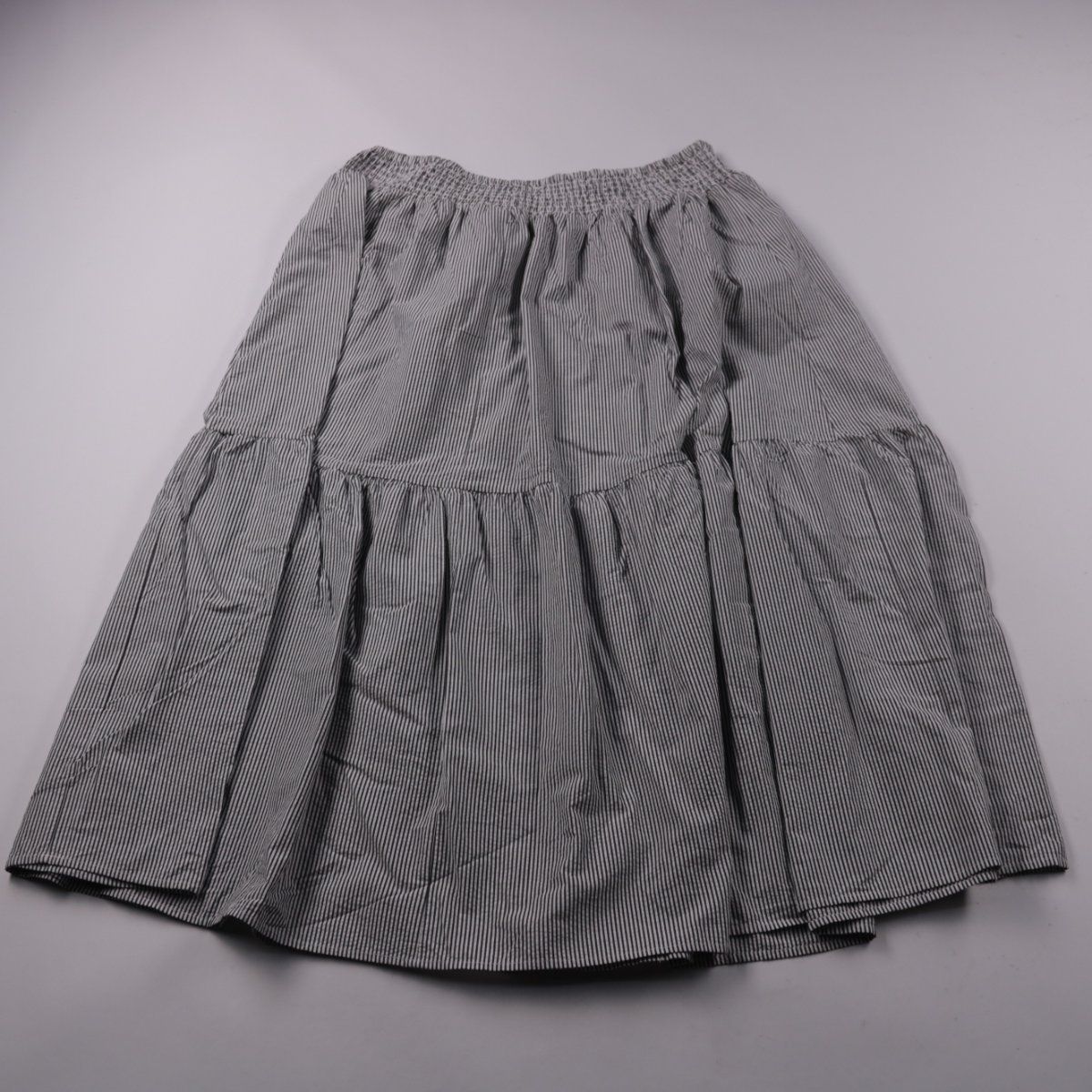 Юбка Avella из хлопка в мелкую полоску, с ярусным кроем и эластичным поясом. Подойдёт для повседневных летних образов и прогулок. Практичное преимущество — натуральная ткань и удобная посадка без застёжек.