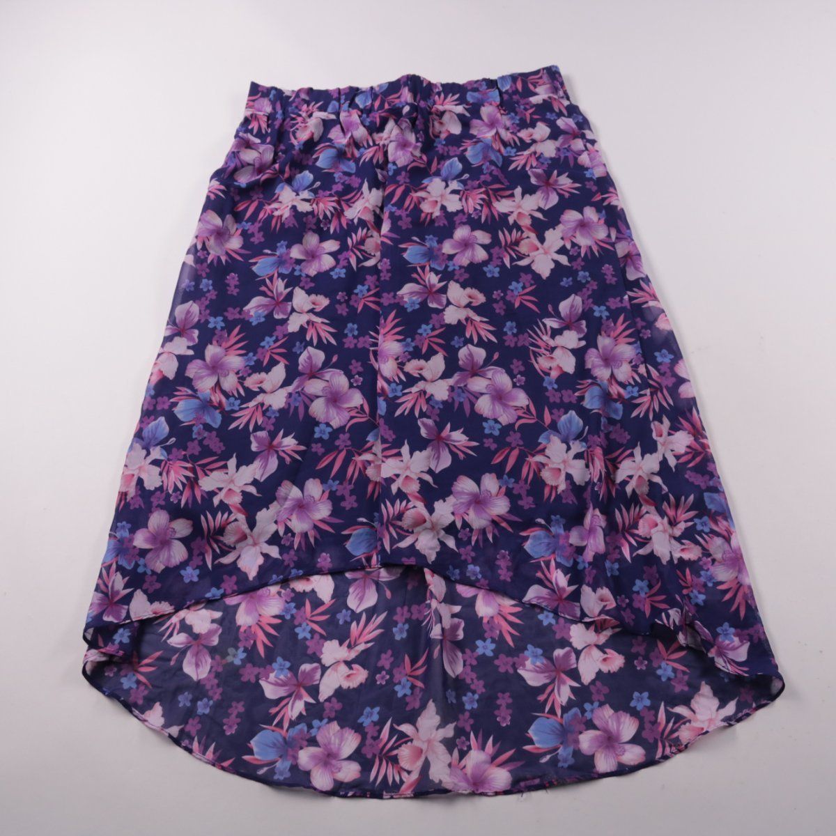 Юбка Crossroads с цветочным принтом на тёмном фоне и эластичным поясом. Подойдёт для летних прогулок и повседневных образов, легко сочетается с однотонным верхом. Практична в уходе за счёт полиэстера и не требует сложной глажки.
