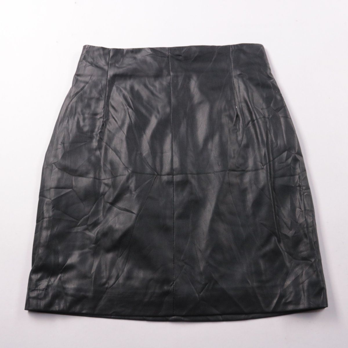 Юбка H&M из экокожи чёрного цвета, прямого кроя с высокой посадкой. Подойдёт для повседневных и офисных образов в любое время года. Практичное преимущество — легко протирается и не требует сложного ухода.