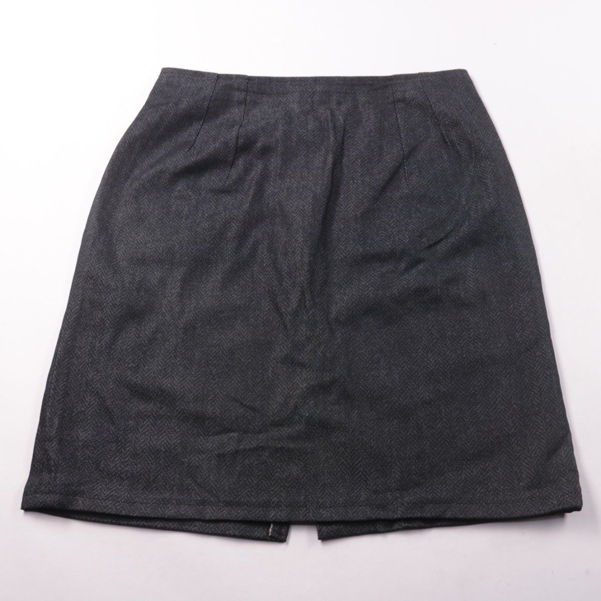 Женская юбка прямого кроя тёмно-серого (графитового) цвета с фактурой «ёлочка» и разрезом сзади. Подойдёт для офиса и повседневных образов в прохладную погоду. Практичный плюс — нейтральный цвет легко сочетать с базовым верхом и обувью.